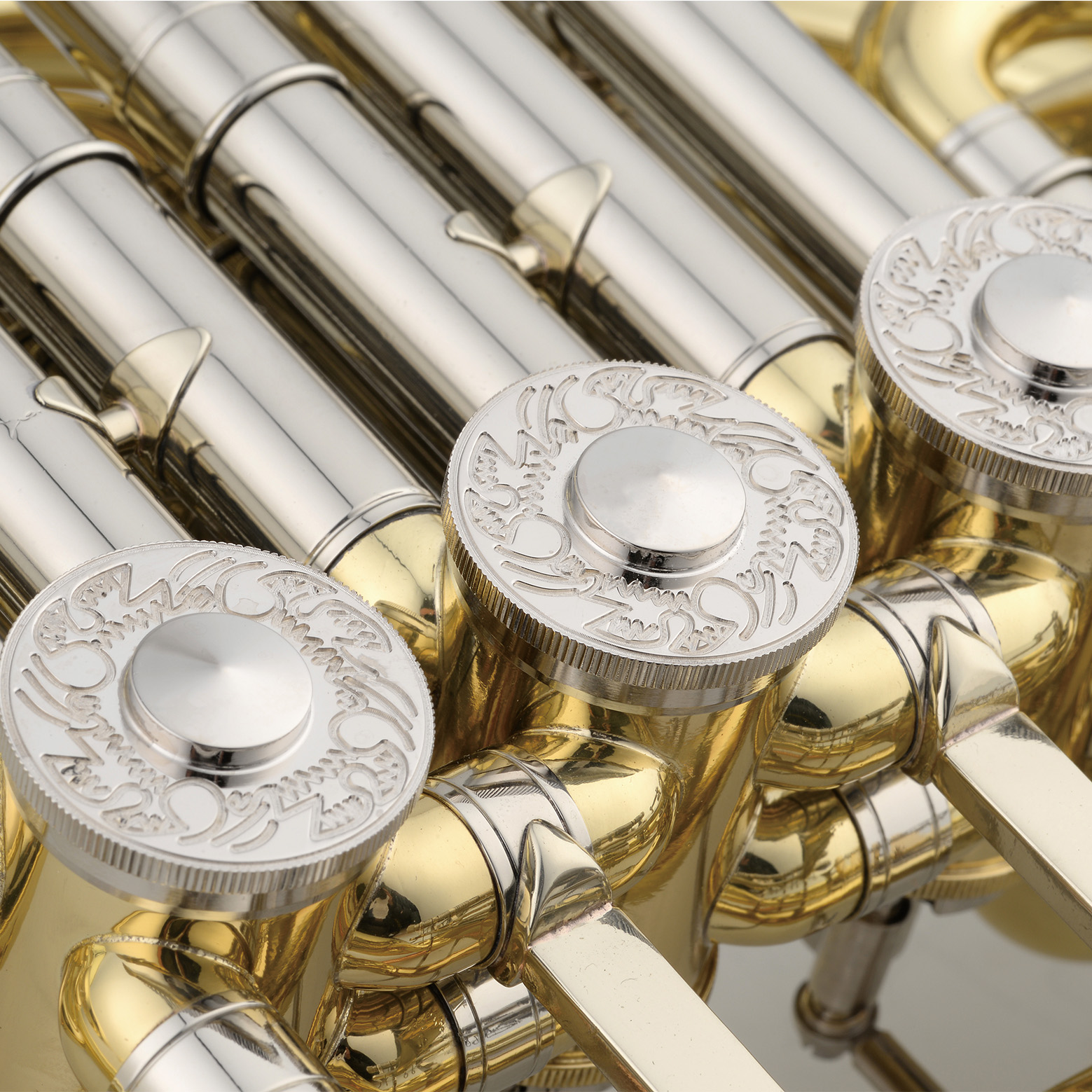 黄铜材质表面清漆分体式四按键连杆式转阀内管12MM喇叭310MM喇叭手工敲制调音管镍白铜可调节手钩按键雕花可双肩背分体帆布