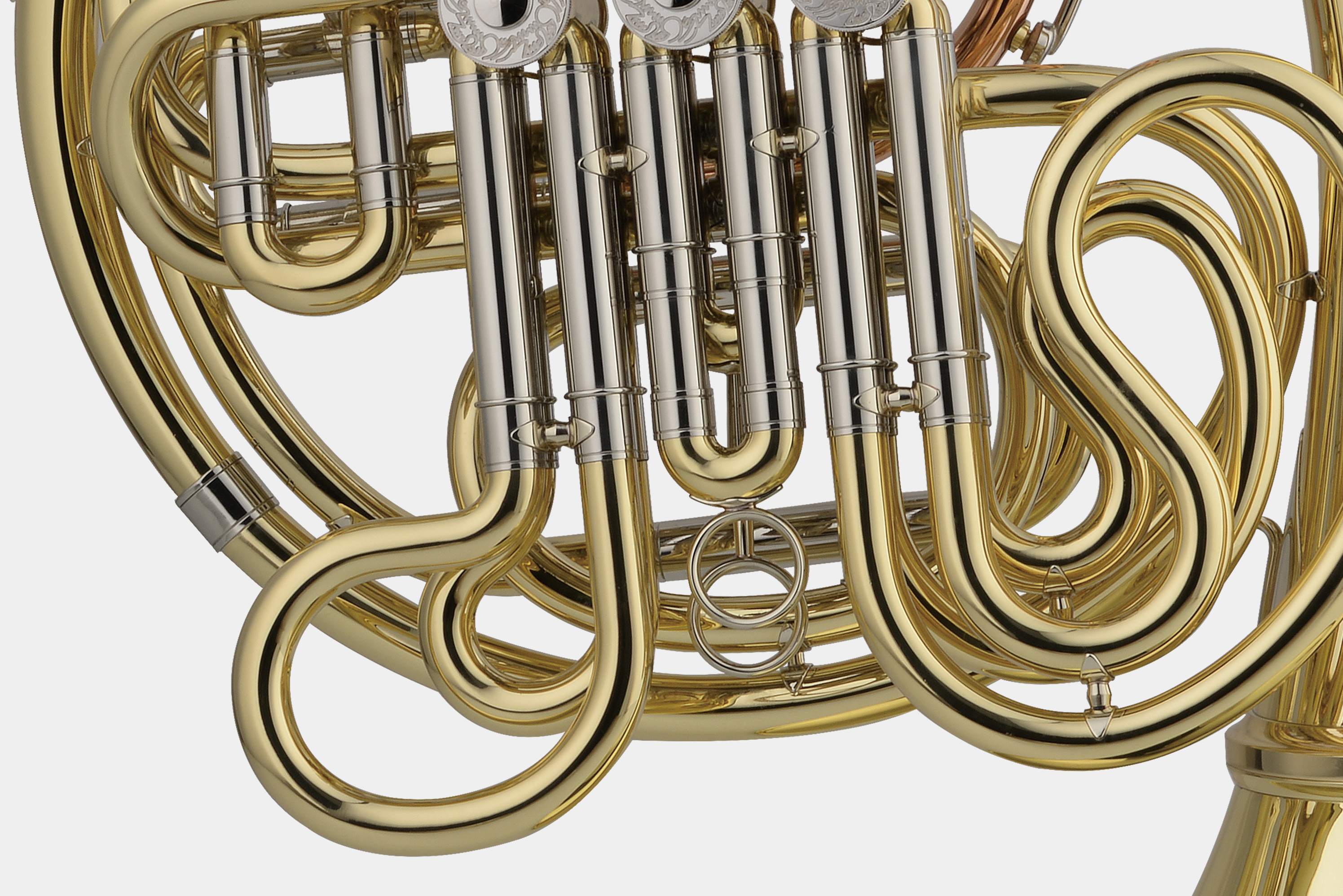 托马森HR350双排分体圆号,大管径,具备专业级别的音响效果,音色浑厚,有很强的穿透力,使用高稳定性连杆式转阀,为演奏者提供精确的速度保证。