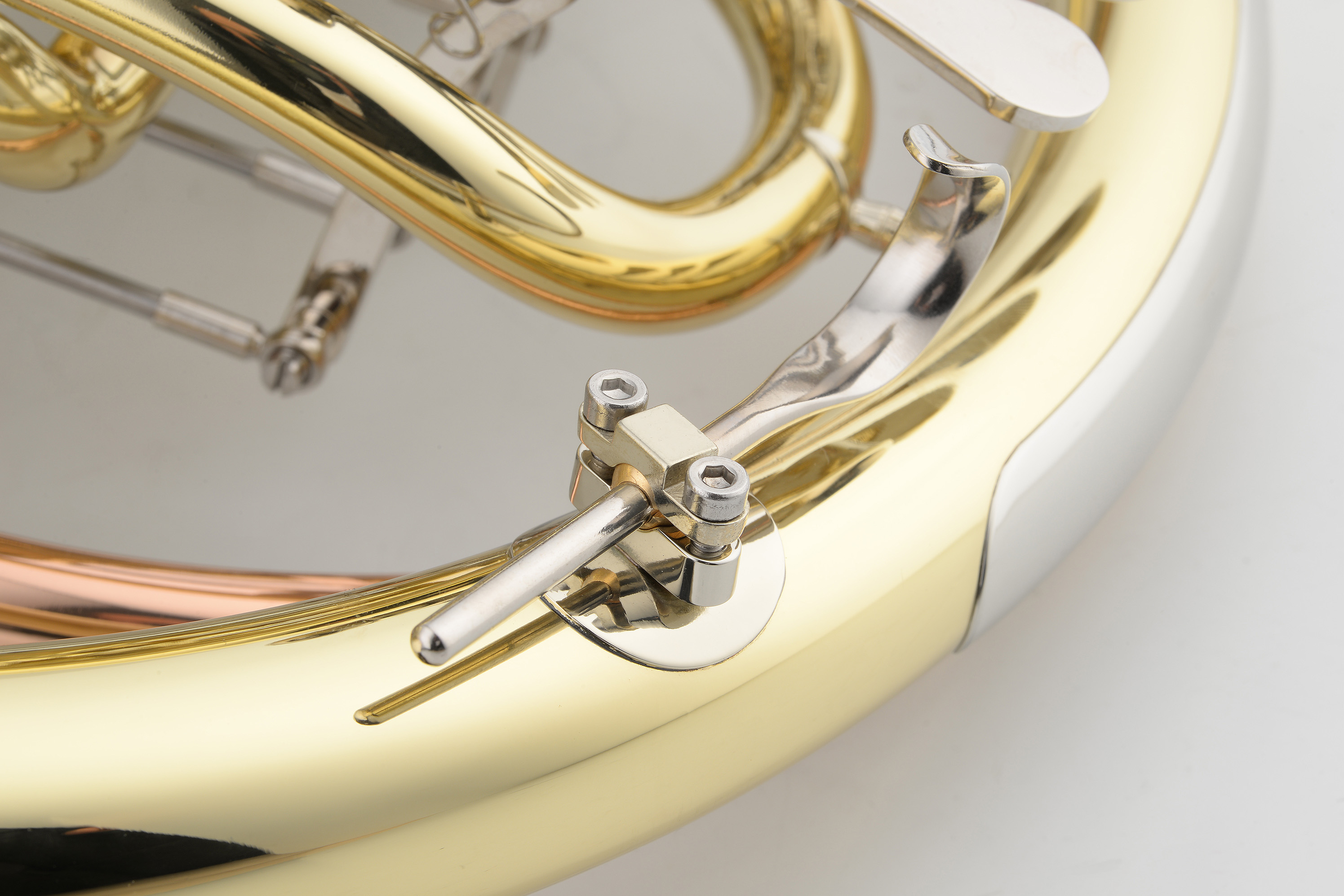托马森HRM单排降B调儿童一体圆号,使用小管径吹口管,11.9MM(.469’’)管径,插口黄铜,哨管镍白铜,黄铜喇叭,让震动更加省力轻松。