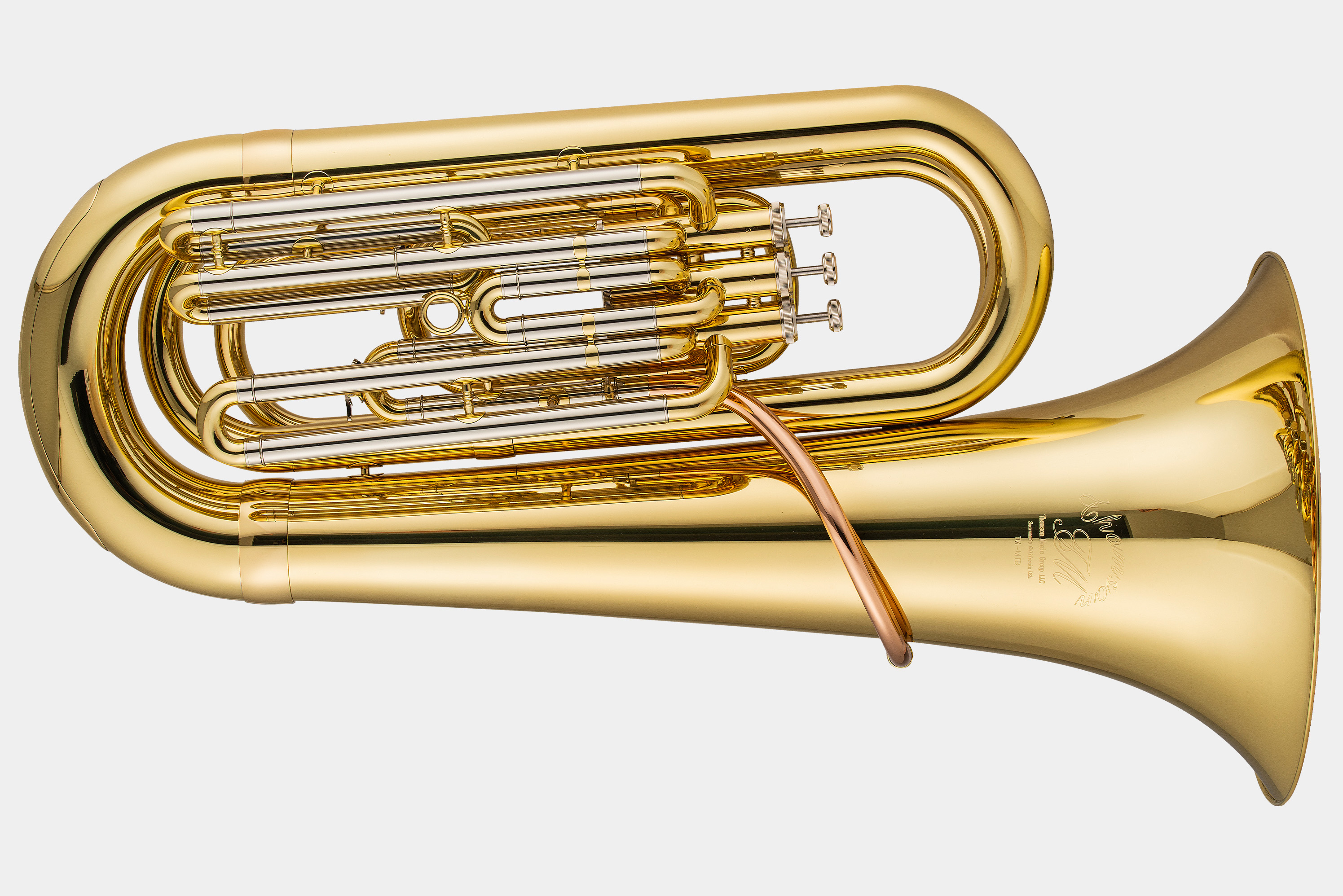 托马森MTB行进大号,精钢三活塞行进大号,可更换吹口管,为交响管乐团使用,是信价比极高的一款低音乐器。内管尺寸16.8mm,喇叭直径366mm。