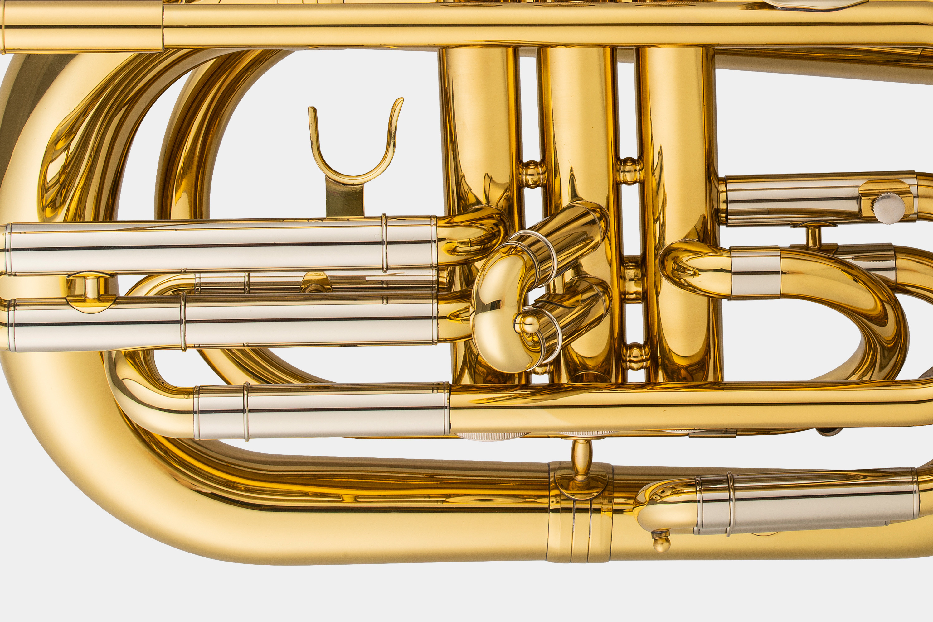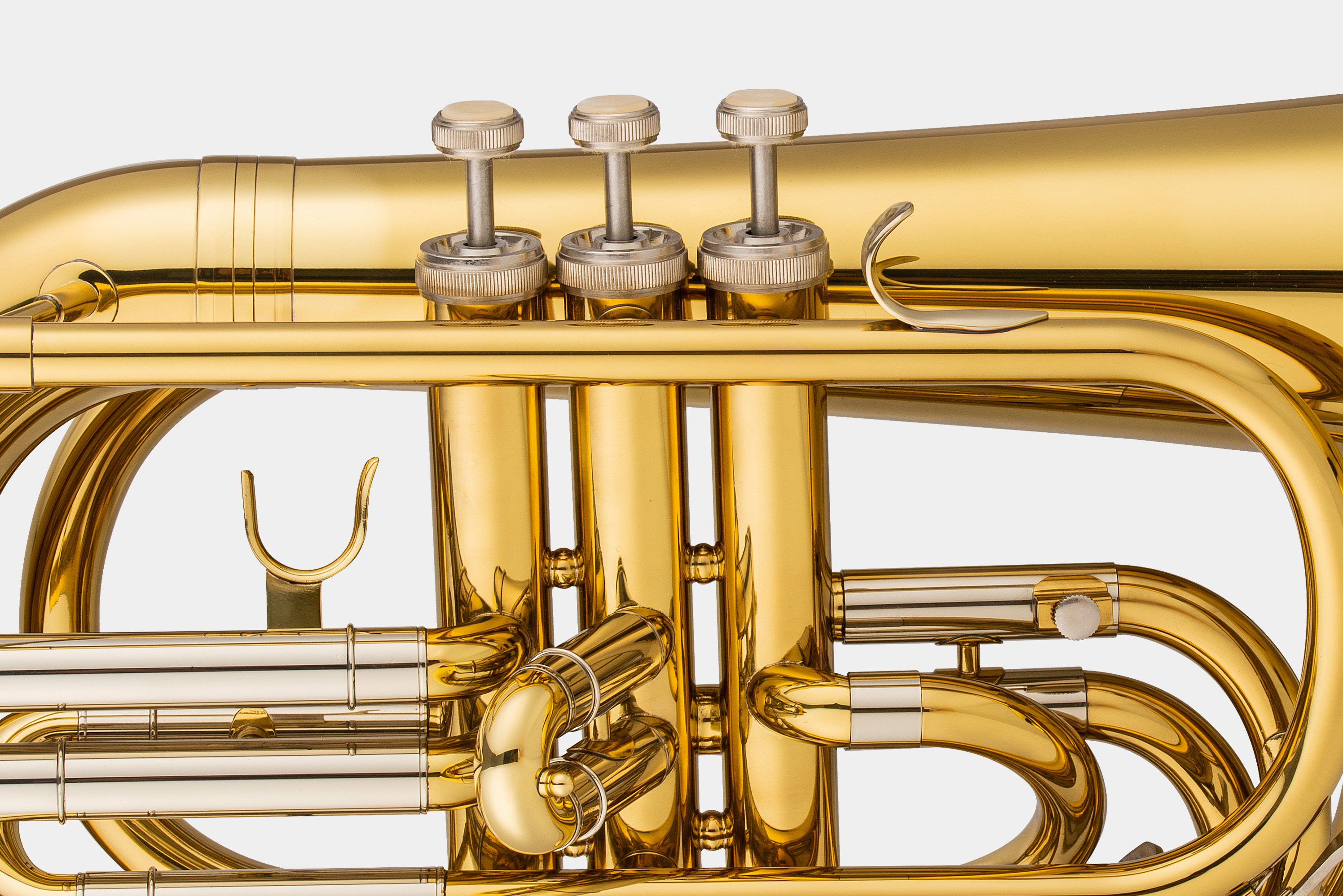 黄铜材质表面清漆三活塞按键耐磨不锈钢活塞调音管镍白铜内管14.5MM喇叭255MM(可定制TM-MBHS表面镀银)