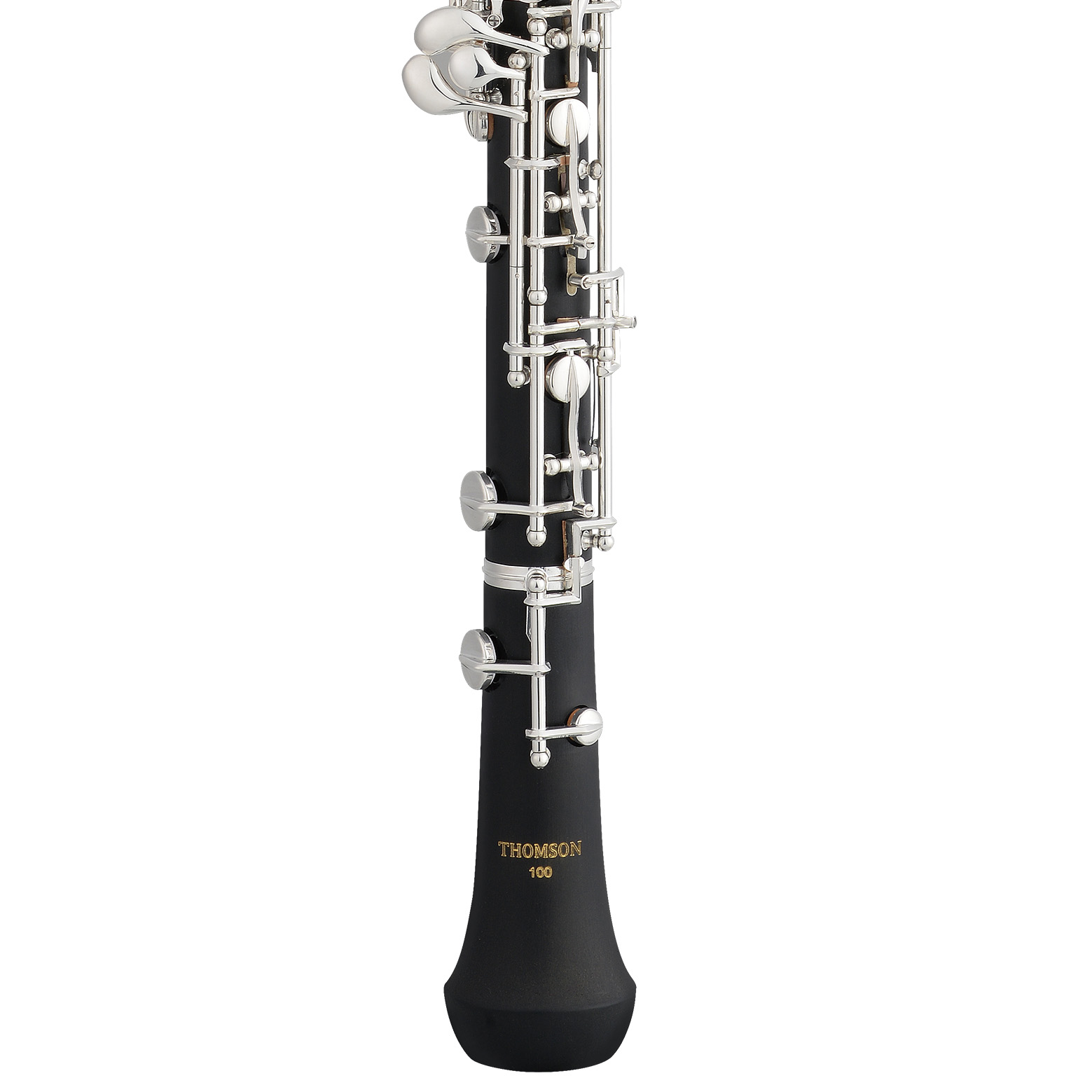 托马森OB100双簧管,这是一款用胶木作为管体的半自动按键体系的入门级双簧管,音键系统包括:半自动型,第三八度高音键,C-D颤音键x2,C-C#颤音键,Ab-Bb颤音系统,Ab-A颤音系统,二叉F音孔,D#E颤音系统,低音C-C#颤音系统,左手F键,铰接式C#系统,低音Bb孔。