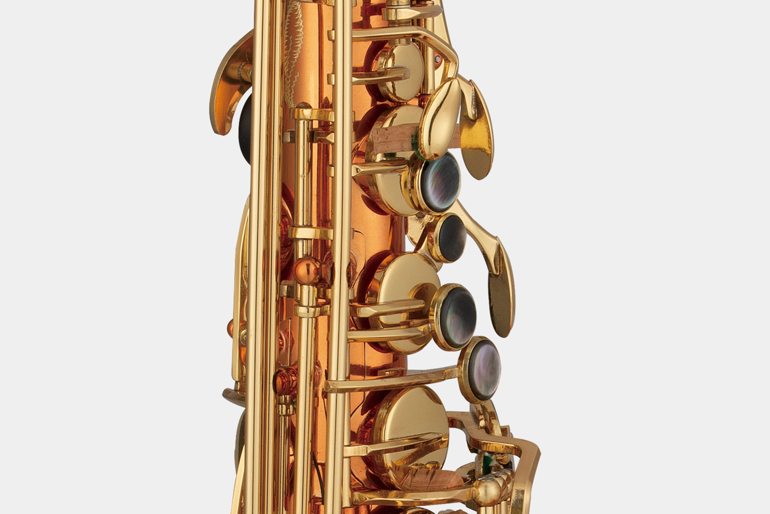 红铜管身表面清漆高音F#键天然贝母按键垫片高密度毛毡及软木喇叭及管身手工敲制喇叭及管身手工雕花