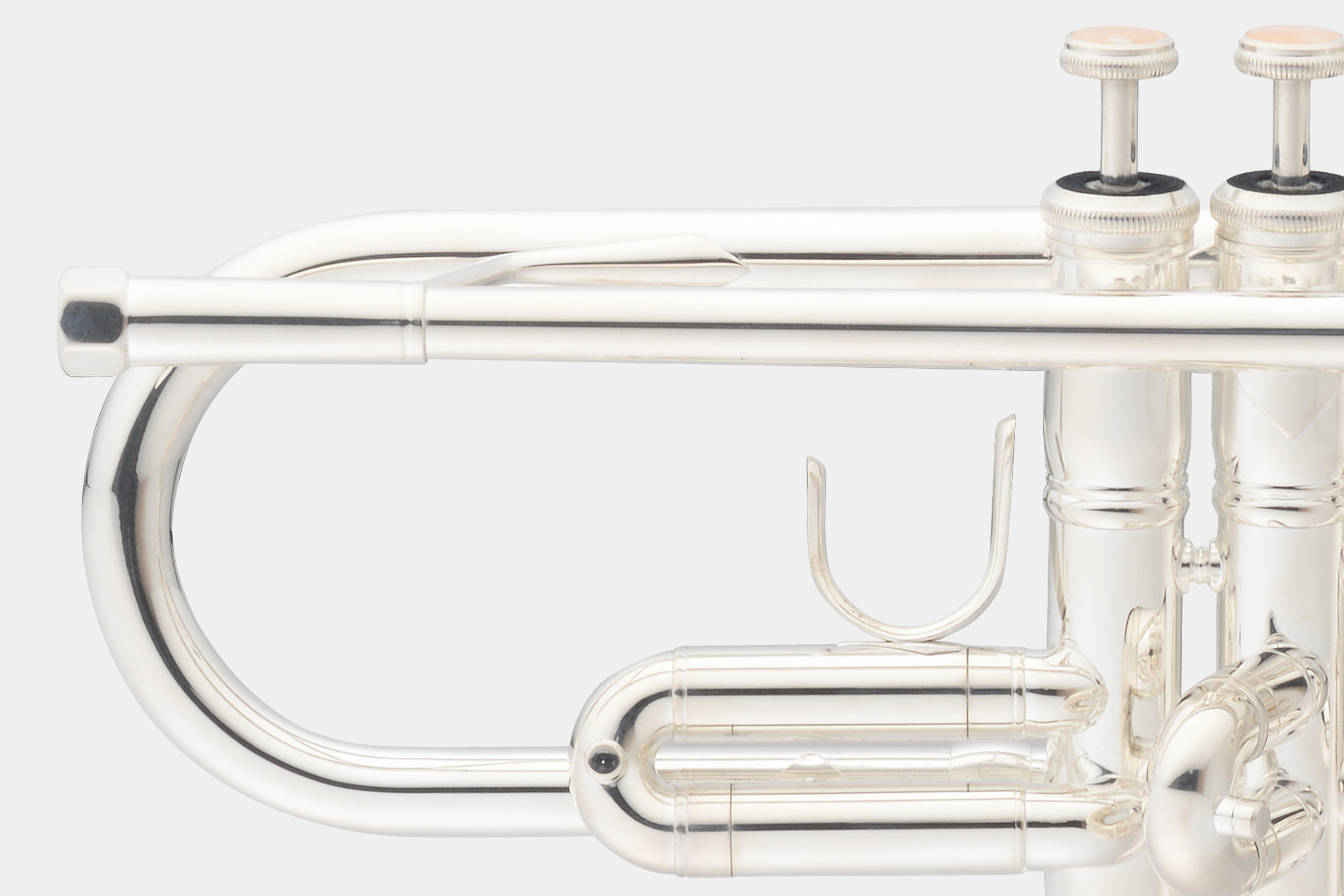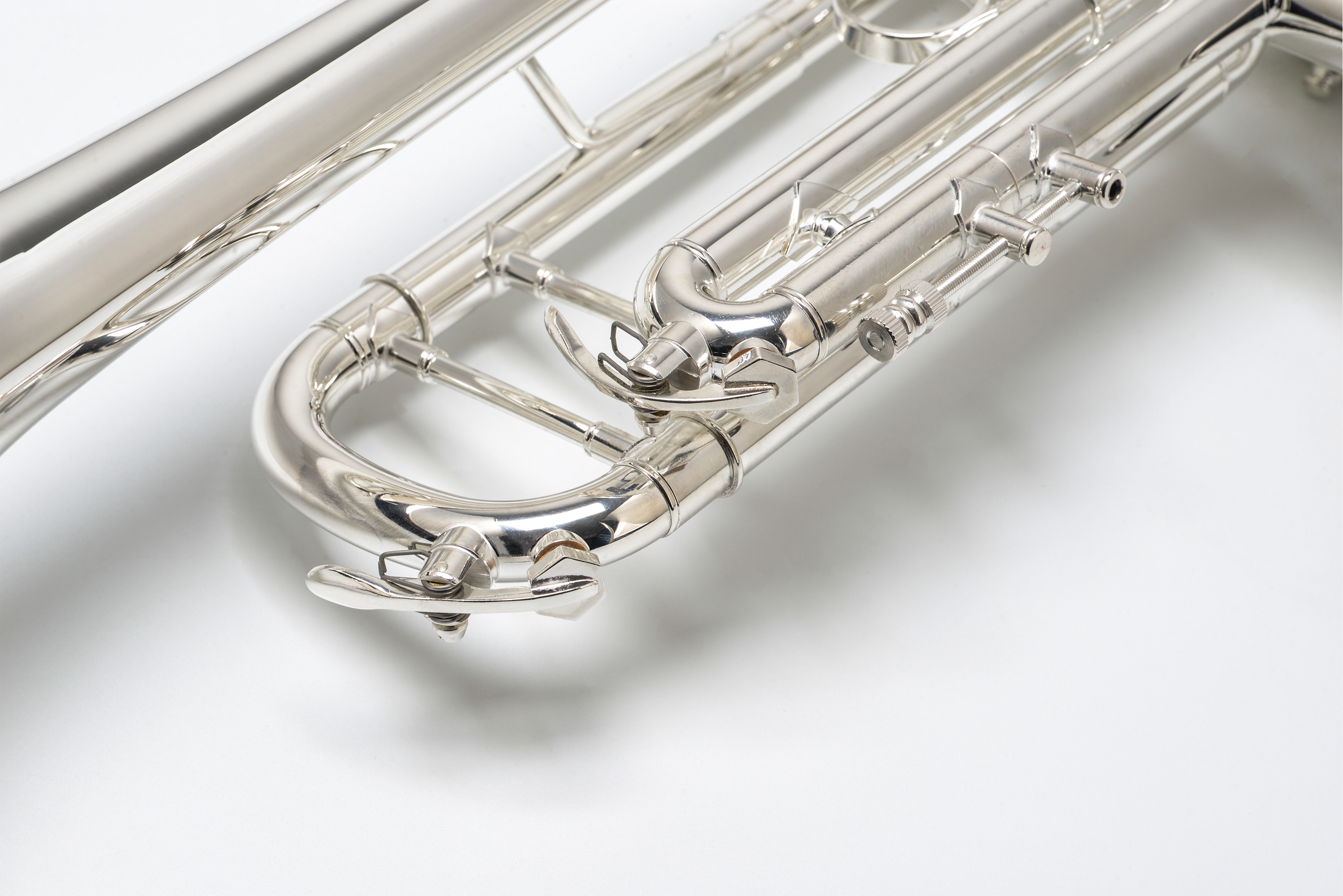 托马森TR150S小号使用11.66MM(.459’’)管径,插口黄铜,哨管黄铜,管身及喇叭黄铜,表面镀银,使音色更加嘹亮也增加了声音的穿透力。