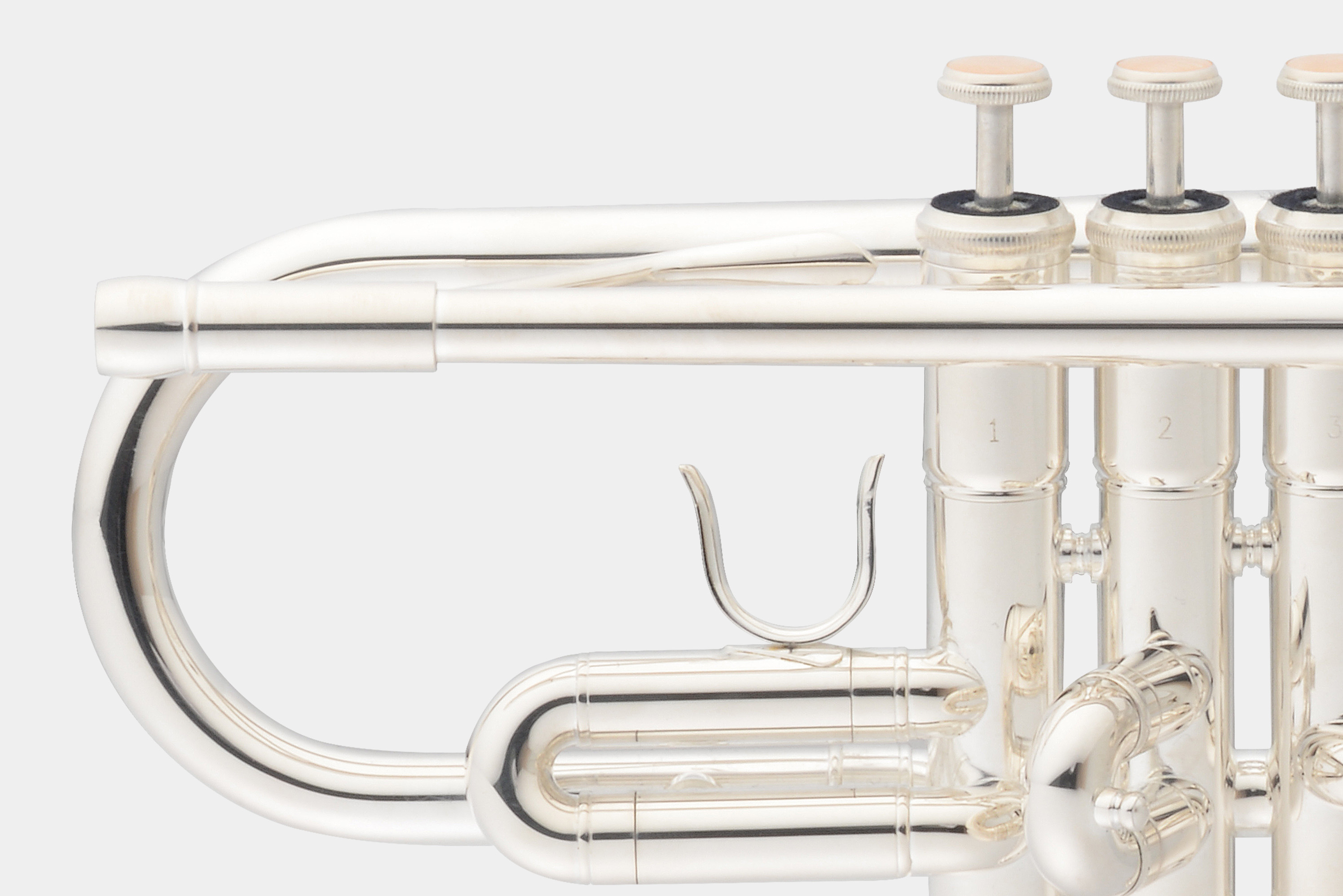 托马森CTR100S C调小号,使用11.66MM(.459’’)管径, 管身及喇叭黄铜,表面镀银。是一款入门级C调小号首选。